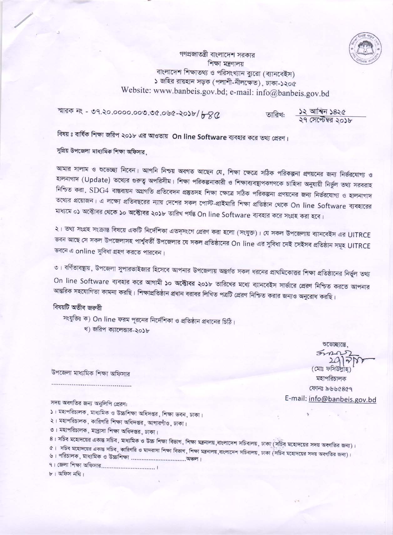 | 43 | ০১-১০-১৮ | বার্ষিক শিক্ষা জরিপ ২০১৮ এর তথ্য আপডেটকরণ (ব্যানবেইস জরিপ) |